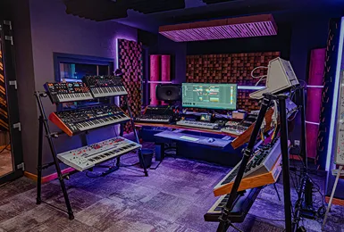 Our flagship Studio A is fully equipped for professional music production, recording, and sound design.